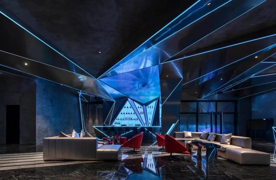 設計師打造了凌厲的線條感,采用多種藝術展覽裝置,為每個獨立派對空間塑造了不同主題基調,幾乎每一存都是打卡點。