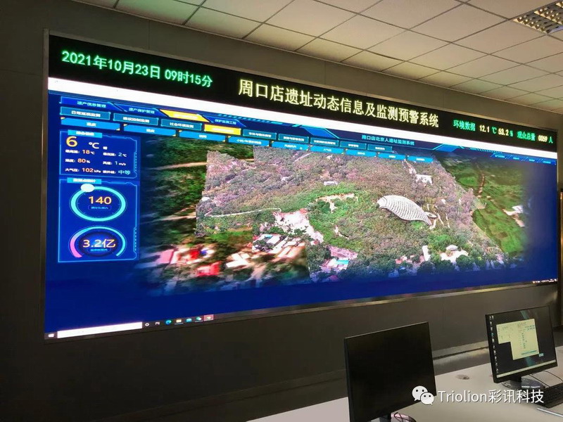 周口店猿人遺址保存了縱貫70萬年的古人類和古生物遺存,是我國古人類學、舊石器時代考古學和第四紀地質等多種學科的科學基地。是經聯合國教科文組織、世界文化遺產中心和國家文物局批準的重點文物保護單位。為了更好的保護周口猿人遺址,彩訊科技攜手北京原真在線檢測技術有限公司為周口店猿人遺址項目提供一套超高清COB led大屏幕及預警監測系統。