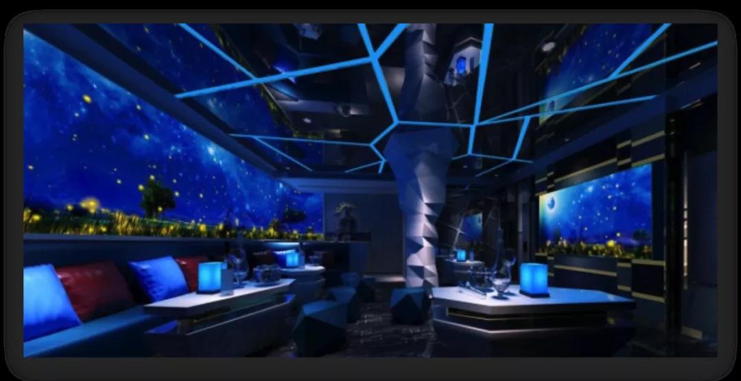 房間里的畫面不只是二維的,也不僅限于在某一個(gè)墻面上,360度、720度的呈現(xiàn)一種渾然天成的獨(dú)3D效果,將KTV包房中一切可以被利用的空間作為反射物,通過前沿的高科技視頻技術(shù)創(chuàng)造出渾然一體的整體視覺畫面,讓整個(gè)KTV包房天、地、四周墻體甚至桌面、沙發(fā)、也可能是桌面上的酒具等等充滿沉浸式效果。讓K歌者在演唱的同時(shí),沉浸其中,畫面隨歌聲的律動(dòng)進(jìn)行變化和舞蹈,可以讓人置身在大型演唱會(huì)中,也可以置身在茫茫草原高歌青藏高原,也可以身處浪漫土耳其演繹深情款款,等等只要你想得到的,一并融入環(huán)境帶來的變化,完全沉浸其中。
