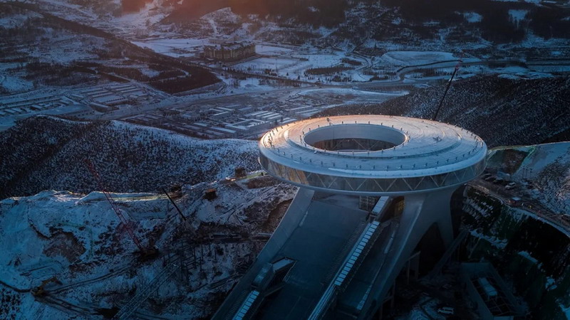 國(guó)家跳臺(tái)滑雪中心是我國(guó)首座跳臺(tái)滑雪場(chǎng),同時(shí)也是北京2022年冬奧會(huì)的主要比賽場(chǎng)館之一。其頂部最高點(diǎn)與地面落差達(dá)160多米,是張家口賽區(qū)冬奧會(huì)場(chǎng)館群建設(shè)中工程量最大、技術(shù)難度最高的競(jìng)賽場(chǎng)館。國(guó)家跳臺(tái)滑雪中心主要由頂峰俱樂部、競(jìng)賽區(qū)及看臺(tái)組成,它的主體建筑靈感來自于中國(guó)傳統(tǒng)飾物“如意”,由于其佇立于覆滿白雪的山巔,因此也被形象地稱為“雪如意”。