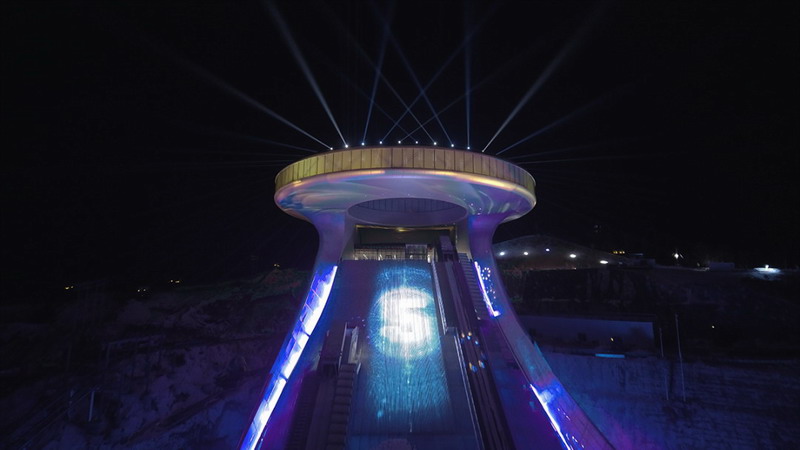 據(jù)了解,此次國(guó)家跳臺(tái)滑雪中心頂峰俱樂部的燈光秀由國(guó)內(nèi)專業(yè)燈光設(shè)計(jì)團(tuán)隊(duì)——豪爾賽科技集團(tuán)股份有限公司設(shè)計(jì)并提供,由安恒集團(tuán)提供投影系統(tǒng)解決方案的設(shè)計(jì)和調(diào)試。系統(tǒng)共采用了32臺(tái)31,000流明的松下激光光源工程投影機(jī)PT-SRZ31KC以及24臺(tái)16,000流明的松下液晶激光工程投影機(jī)PT-SMZ16KCL,對(duì)頂峰俱樂部的圓環(huán)外側(cè)以及底部進(jìn)行投射。