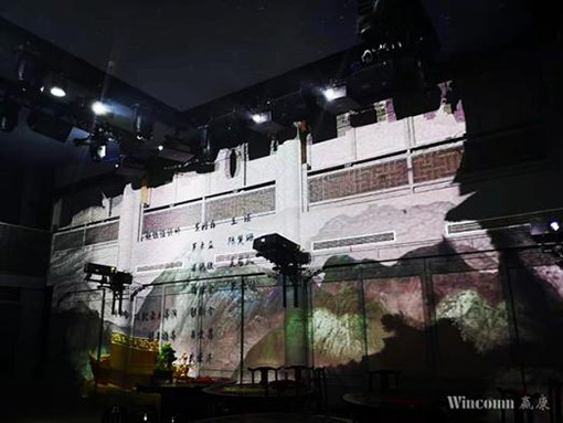 該演出空間的投影介質非常多樣,天花、墻體、窗戶、樓閣等多種場景都涉及到投影,不同的成像介質,對投影要求極高,專業演出又對投影畫面有著近乎苛刻的一致性要求,要求圖像清晰銳利,始終如一,投影畫面需要保持高度的一致性。