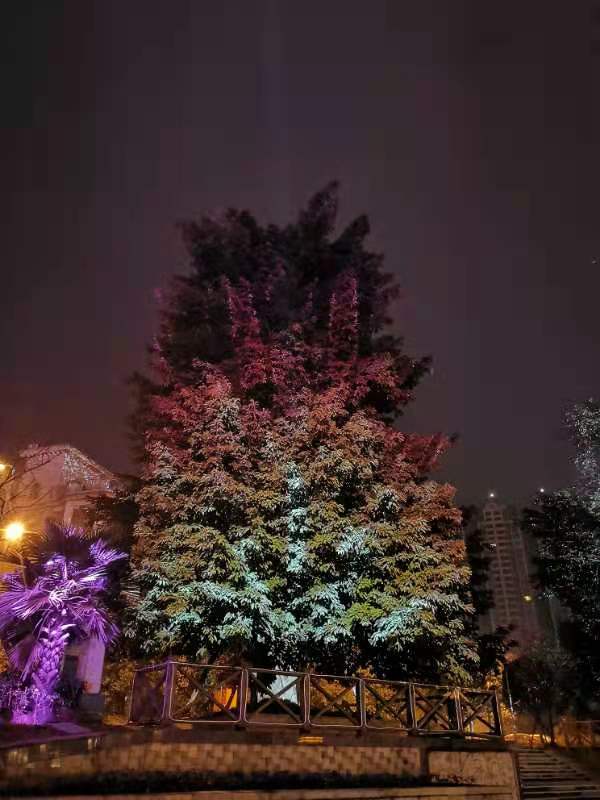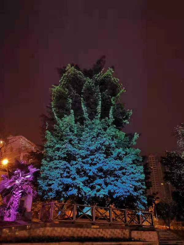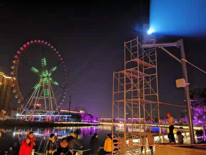 “今年元夜時,花市燈如晝。” 特別是成都金堂的毗河灣旅游度假區(qū)現(xiàn)“樹上投影”奇景,在今年春節(jié)爆紅網(wǎng)絡,吸引了不少市民慕名前來打卡。位于金外灘梯步廣場兩側(cè)的參天大樹,樹影搖曳,用2臺NEC 英雄雙色激光工程投影機演繹出的翩翩舞姿“仙”氣十足,靈動光影與遠處的摩天輪遙相呼應,在這座充滿活力的都市營造了動感又個性的歡樂節(jié)日氛圍。
