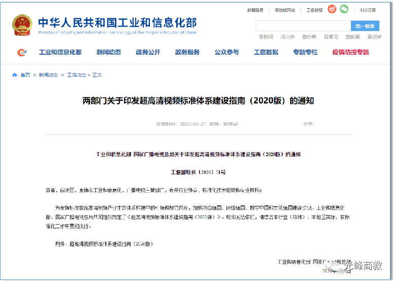 在2020年5月工業和信息化部、國家廣播電視總局印發《超高清視頻標準體系建設指南》,促進超高清視頻產業持續發展,顯示高清化。表示對顯示設備提出了更高分辨率的要求。
