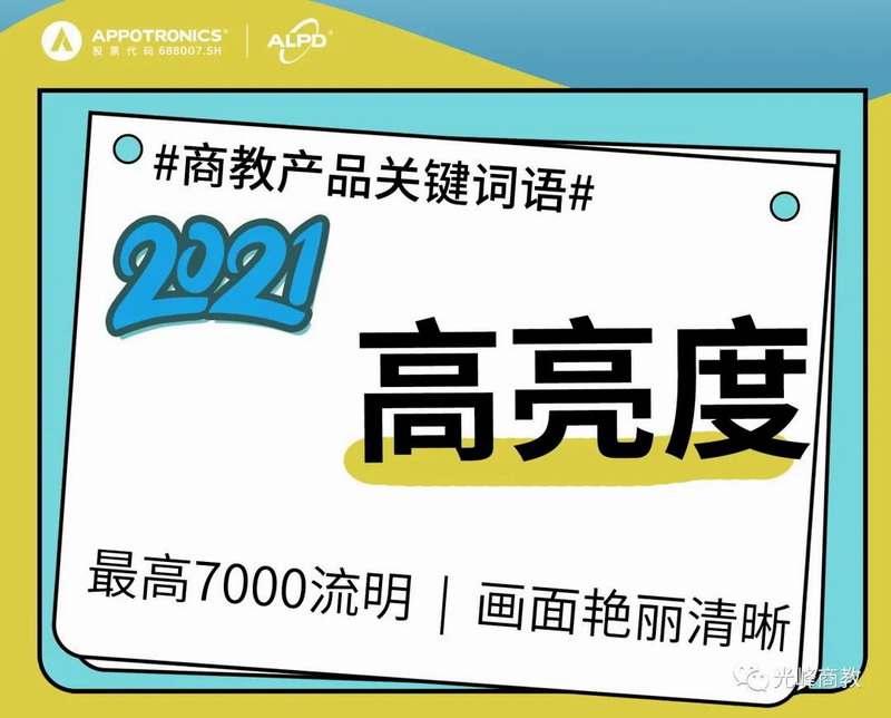 2021產品關鍵詞,是光峰商教產品升級迭代規劃藍圖,變局來臨之時,順應教育信息化發展趨勢,向著高清、高亮、大畫面廣視角、護眼發展,更大力度推動改革創新,以務實創新的心態、勇爭一流的決心,讓我們全力奔跑,2021未來可期!