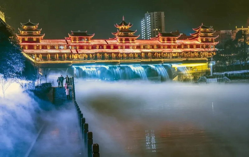 湖北恩施市清江流域上演了一場美輪美奐的視聽盛宴,