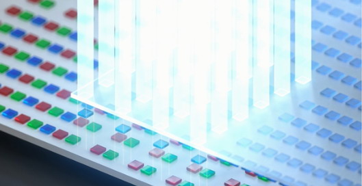 LLO工藝同時處理整個區域內的所有相鄰晶粒,而轉移工藝則與此不同,它會將晶粒的間距從原始晶片的緊密間距,更改為最終顯示屏的像素間距。這就要使用光掩膜,例如采用每隔5個晶粒或每隔10個晶粒才照射一次的模式。然后,當顯示屏的下一個區域平移到位等待晶粒填充時,就會對掩膜進行分度,使其相對于臨時載體移動一個單位的晶粒間距,以便轉移新的一列晶粒。