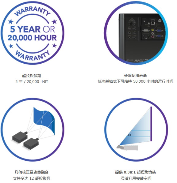 LWU1200-DS 擁有 4,000,000:1 的對比度和 WUXGA 分辨率,精確呈現細節豐富的視覺效果。當檢測到 HDR 輸入時,HDR 檢測功能自動設置圖像模式。內置邊緣融合、幾何校正和色彩調整功能,支持輕松快捷地完成平面和柱面屏幕投影設置。與其他 DS 系列機型一致,LWU1200-DS 的質保長達 5 年或 2 萬小時。