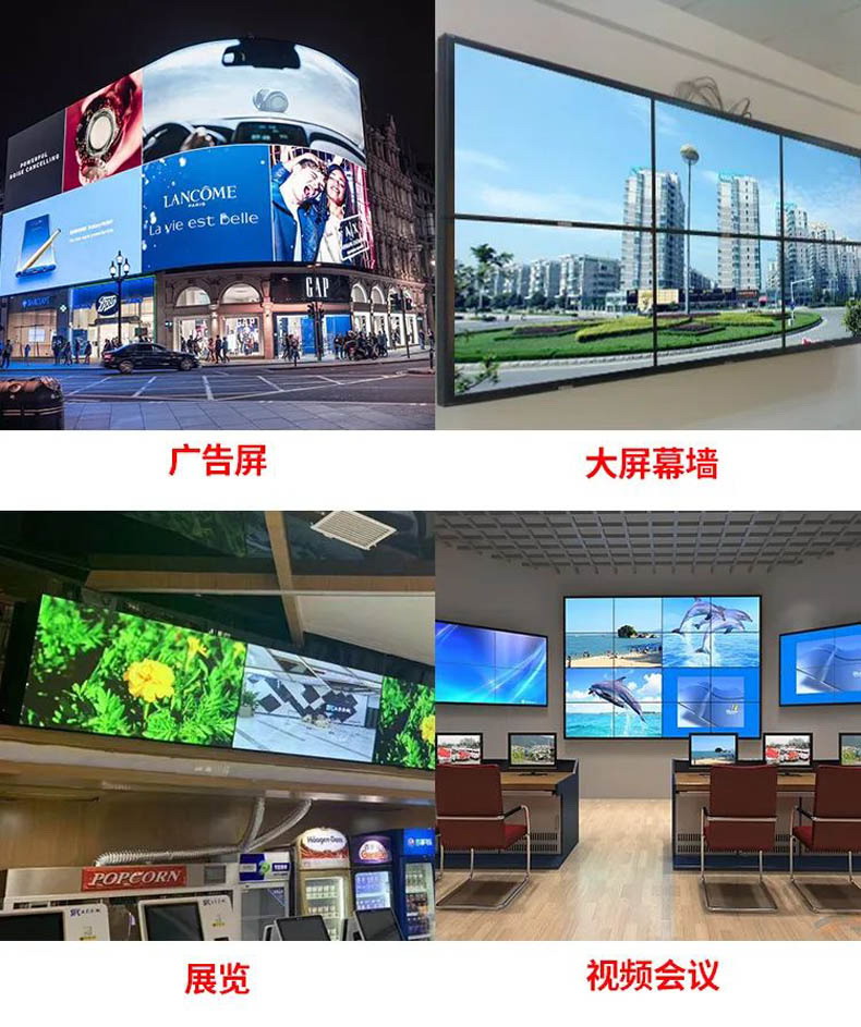 超高分辨率桌面應用,超大屏幕墻,指揮調度系統,多屏幕視頻監控,工程顯示應用,多通道投影,虛擬現實,環幕影院,大型廣告墻,LCD/LED多屏等。