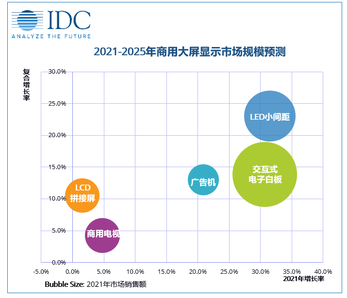 2021年中國商用顯示大屏市場規(guī)模預(yù)計增長超22%,LED小間距和交互式電子白板將成為市場重點
