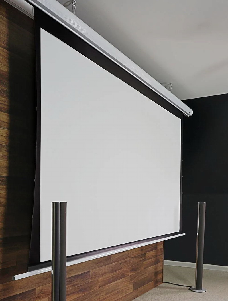 獵隼電動拉線幕可隱藏于天花板,不影響您客廳的整體裝修風格。整體干凈整潔,有效提升美感!雙邊拉線設計,加強畫面平整穩定。優質的畫面表現,完美地展示真實色彩。4K劇院雪白幕布,高畫質呈現及色彩還原度高。