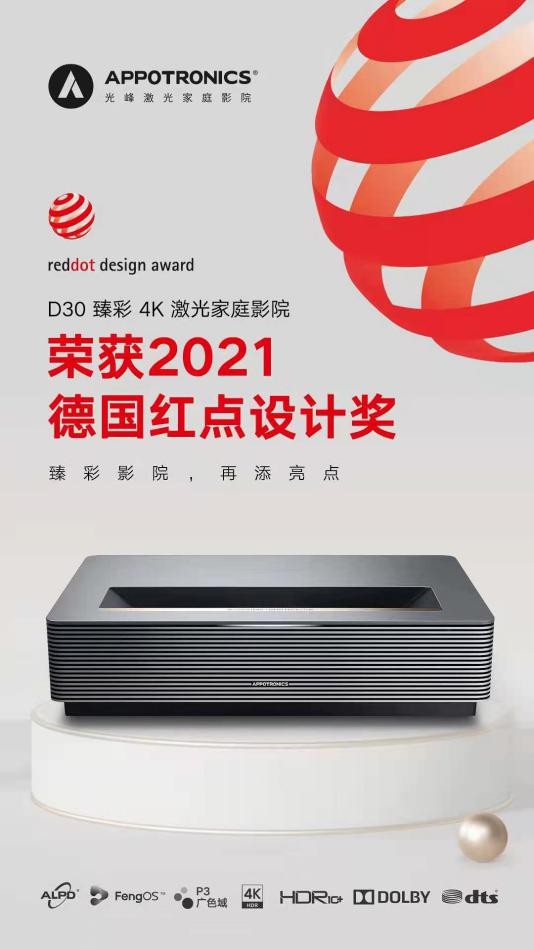 近日,德國紅點設計獎正式官宣了2021年的獲獎作品,光峰科技(688007.SH)臻彩4K激光家庭影院D30憑借出色的創(chuàng)意與設計,榮獲此項國際設計大獎。2013年,光峰科技曾憑借其推出的世界首款100 英寸激光電視,首次獲得此項堪稱“國際工業(yè)設計的奧林匹克”的設計大獎。