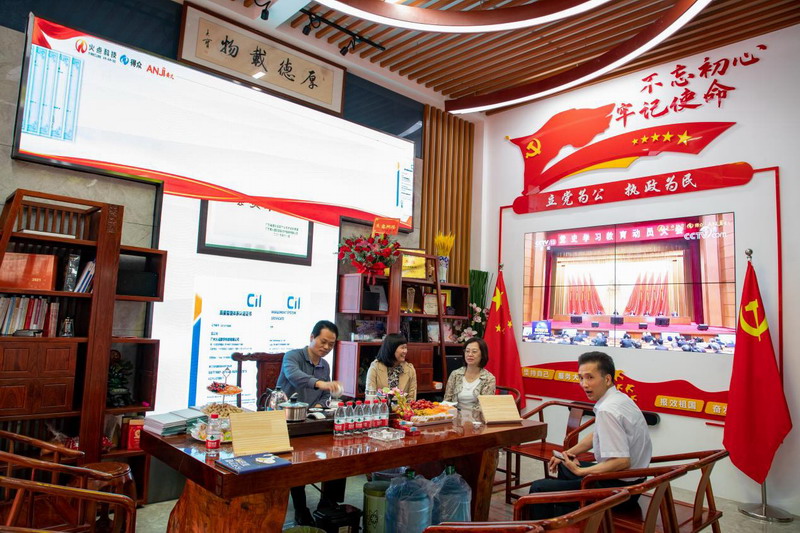 新公司大樓采用了自研發智能中控集成系統,以一樓黨建主題商顯區、一樓閣樓會議室、二樓沉浸式投影互動室為主的智能數字展廳,分別打造了以各類高科技的商業顯示載體和集中式智能控制系統的視覺體驗。