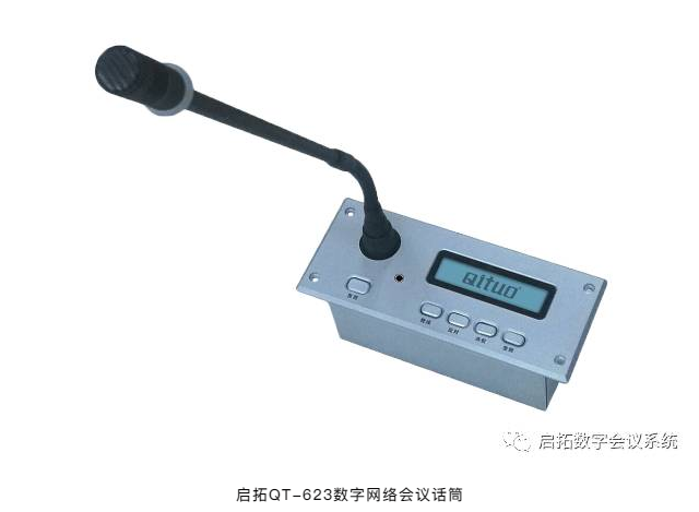 此次武警某總隊會議室項目中會議話筒為啟拓(QITUO)數(shù)字網(wǎng)絡(luò)會議話筒QT-S623C/D。QT-S623系列會議話筒為嵌入式會議話筒,具有發(fā)言討論等功能。QT-S623系列麥克風(fēng)與會議主機(jī)之間采用標(biāo)準(zhǔn)CAT5網(wǎng)線以手拉手模式連接,并通過以太網(wǎng)交換機(jī)進(jìn)行通訊;系統(tǒng)中每臺麥克風(fēng)都可獨立工作,其中任意一臺麥克風(fēng)故障或更換,都不會影響到整套系統(tǒng)的正常運行。整個數(shù)字網(wǎng)絡(luò)系統(tǒng)安裝簡單,施工方便,具有低失真,抗干擾等明顯優(yōu)勢,且音頻質(zhì)量不受話筒數(shù)量限制。