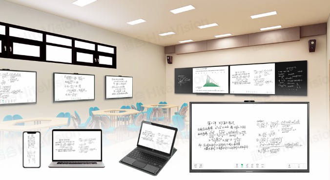 另外,鴻合高校智能交互黑板也廣泛應用于智慧教室方案中。其采用全貼合工藝,將傳統黑板與交互平板無縫融合;178°廣視角讓學生在高校大空間教學場景中也能多角度看清黑板。與此同時,鴻合高校智能交互平板與黑板均內置企業級無線路由,更快速穩定,支持多終端設備連接,讓課堂互動形式更加豐富。