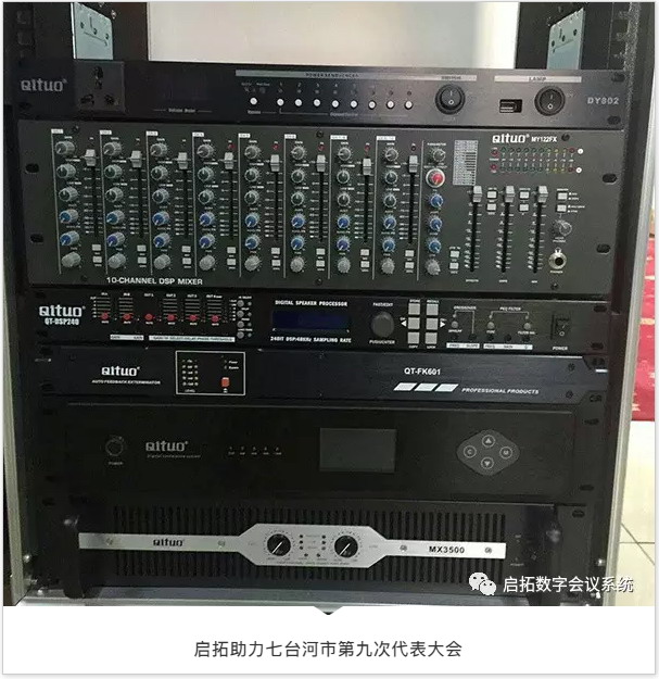 在七臺河市第九次代表大會整個會議過程中,啟拓會議系統(tǒng)全方位提供會議保障,擴聲系統(tǒng)、中控系統(tǒng)、發(fā)言系統(tǒng)等運行良好,全面保證會議的正常進(jìn)行!此次大會發(fā)言話筒使用的是啟拓(QITUO)QT-522系列會議話筒。