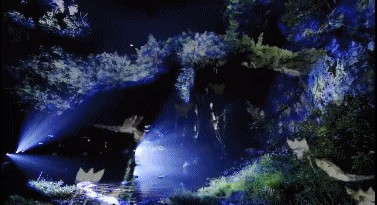 設計團隊以叢林樹木、瀑布崖壁為天然銀幕,將一段奇景森林投影在上面,一幕幕CG動畫般動物王國故事在觀眾眼前上演。