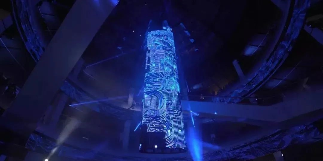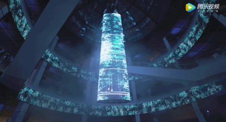 商城兩個圓環形的LED屏幕結合中心的360°圓柱形屏幕,把沉浸式的視覺效果演繹到極致。