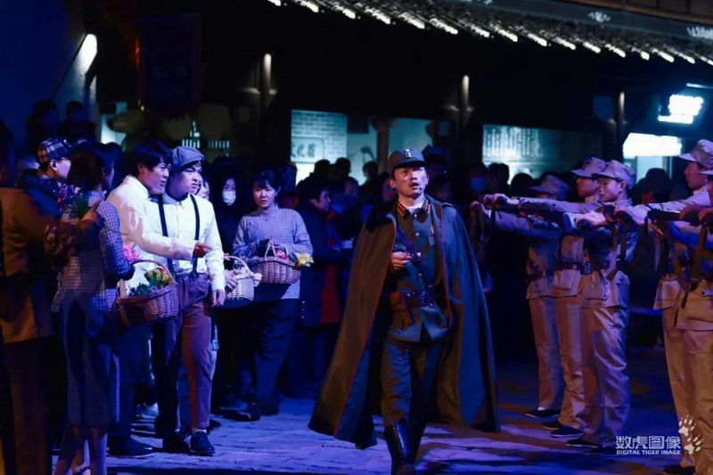 觀眾跟著賣花女、賣糖葫蘆的小販、黃包車夫等游走在老街。戰火紛飛的年代,那些英勇可愛的人兒曾生活在這片熱土,他們不會隨著時代的變遷而湮沒,他們留在了沙家浜,留在了橫涇老街。