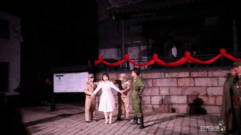 演藝由《崗哨門關》《紅影潛伏》《情生》《茶館智斗》《游行》《迎親》《智斗胡司令》七部分組成,通過橫涇老街行進式夜游,層層鋪墊、遞進,把觀眾引導到橫涇劇場看一出好戲。正所謂“一千個讀者有一千個哈姆雷特”,每一個到這里的游客,自有一出屬于你的《暗戰·沙家浜》。