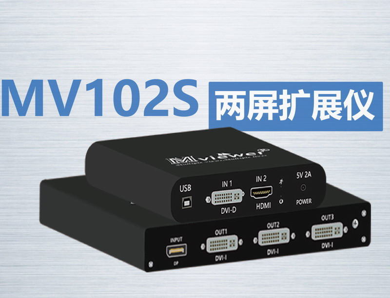 MV102S系列兩屏寶是針對筆記本電腦和臺式機的一種外部多顯示器升級工具。單機支持將一路DVI/HDMI/DP信號輸入至兩臺顯示設備,最高支持3840x1200@60Hz輸入。通過多個設備并聯,還能擴展至更大顯示規模,可廣泛是應用于多通道投影系統。
