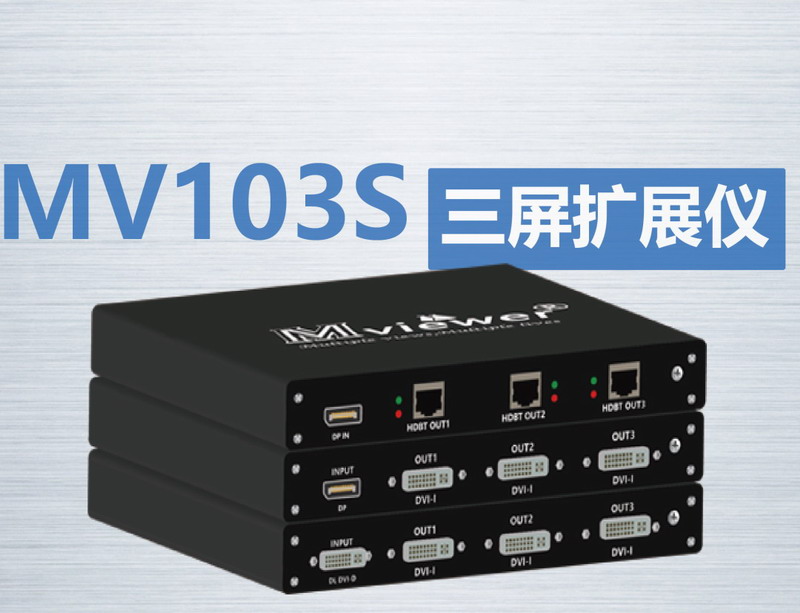 MV103S系列三屏寶是針對筆記本電腦和臺式機的一種外部多顯示器升級工具。該系列的普通版及PRO版外觀相同。單機支持將一路DL-DVI/DP信號輸出至三臺顯示設備,最高支持5760x1200@60Hz輸入。單機支持信號水平輸出,通過多個設備并聯,支持將系統擴展至更大規模,可廣泛是應用于多通道投影系統。
