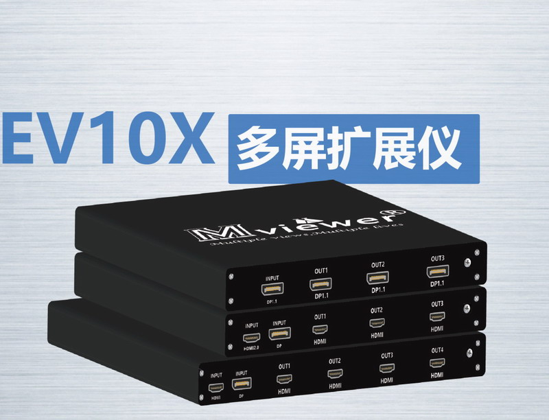 EV10X系列多屏寶是針對筆記本電腦和臺式機的一種外部多顯示器升級工具。單機最大可將一路DP/HDMI信號輸出至四臺顯示端,水平輸入最大支持7680X1200@60Hz;通過多個設備并聯,還能擴展至更大顯示規模,可廣泛是應用于多通道投影系統。