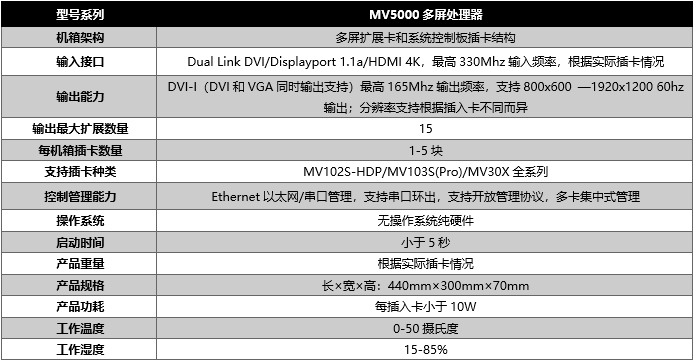 MV5000機架多屏處理器是可管理的機架式超高清多屏擴展設備。單機最多支持5塊DL-DVI/HDMI/DP三屏擴展卡混合插入;支持集中式以太網管理,支持開放管理接口;純硬件模塊化設計有效保證系統的可靠性,實現高密度的多屏擴展,為客戶提供更高價值,可廣泛應用于超高分辨率拼墻,虛擬仿真,展館,指揮等高要求場合。
