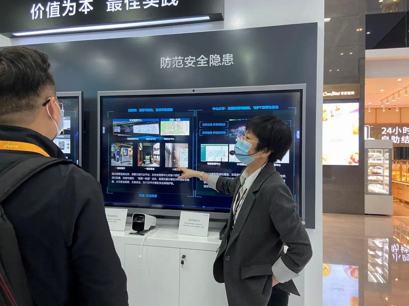 不僅有具體方案的亮眼表現,它的身影還出現在其他展位中。產品/方案介紹PPT清晰展示在WonderHub之上,工作人員還能在大屏上自如翻頁或批注,講解更加一目了然。