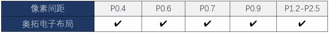 表注:截止2020年2月,奧拓電子布局了P2.5-P0.4市場(行家說根據(jù)公開信息整理)
