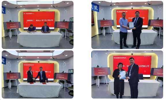 產(chǎn)品分享結束后,經(jīng)過短暫的茶歇,活動進入到高潮部分——簽約授牌環(huán)節(jié)。本環(huán)節(jié)由趙澤房先生代表希沃同合作伙伴簽約,由武文路、刁旭先生親自授牌并合影留念。