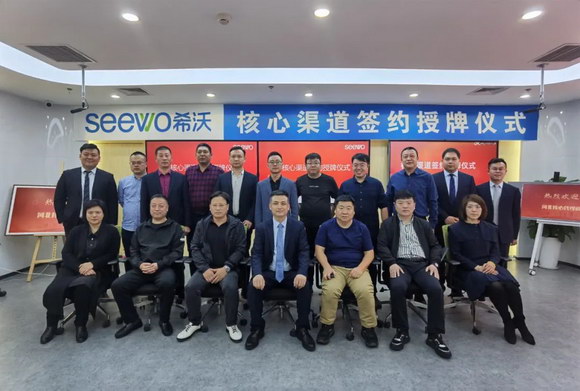活動當天,共十二家核心渠道商應邀出席簽約授牌儀式,希沃華北區(qū)管理層攜相應產(chǎn)品線負責人一同出席了本次活動。