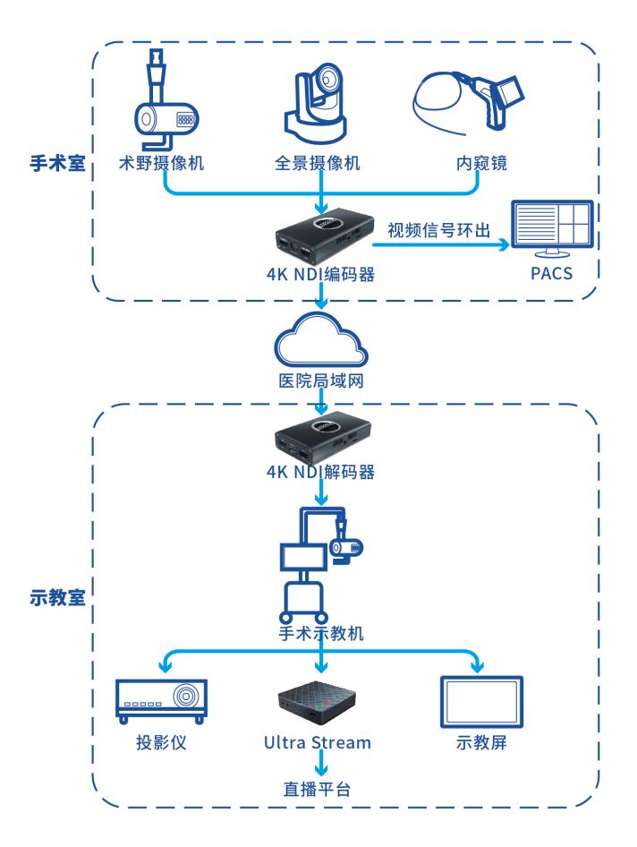 在4K示教系統中,解碼器能直接解碼視頻輸出顯示,有效緩解手術示教主機的解碼性能壓力