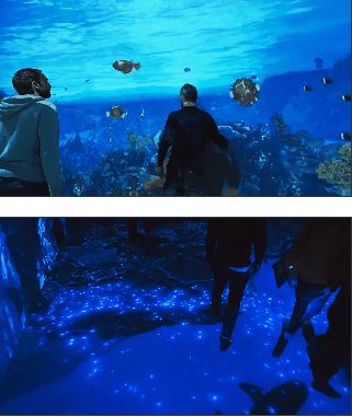 單從圖片來看,很難相信這是一個(gè)通過全息投影打造的數(shù)字虛擬水族館。在這里,你會(huì)看到那些原本需潛入到深海才能欣賞到的絢麗奇景,水下世界的神奇生物與瑰麗景觀都會(huì)讓人眼前一亮。