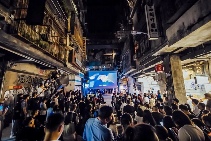同時,有了這樣的一塊激光大屏,在文和友這樣的商業空間下,可以輕松打造成露天電影院模式、演唱會模式、歌舞娛樂模式等,配合上燈光音樂效果,場景切換毫無壓力,可為顧客創造更多維的消費體驗。比如,在深圳文和友的B站紀錄片發布夜,率先受邀參與內測的朋友們便是在光峰激光大屏前,見證了這個值得紀念的時刻,現場宛如在80年代看的露天大電影。