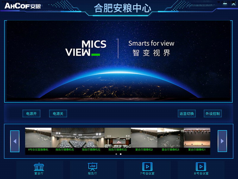 在合肥安糧中心項目中,通過MICS云一體化解決方案,工作人員可在主控室對安糧中心內的宴會廳、報告廳、兩個會議室內的信號源進行調度。而在不同的房間內部,工作人員僅可對所在房間內的設備進行控制與內容上屏。