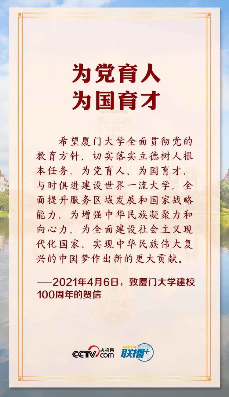▲習近平總書記致信祝賀廈大100周年