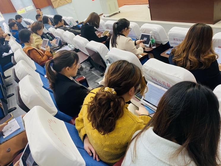 隨后,由培訓團隊擔任老師、參訓老師擔任學生,真實地還原課堂環境,從課前預習、課件推送、拍照上傳、課后測試等多環節展開實操培訓,讓老師從學生的角度探索希沃易課堂的使用方式,以及多角度地思考課程設計,從而更好地把希沃易課堂的基本功能與教學相融合,真正地體會到智慧課堂的魅力。