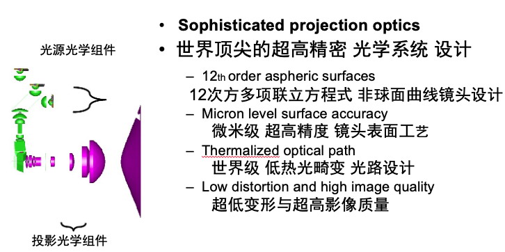 1、鏡片材料和工藝,超投電視的鏡頭普遍采用非球面鏡,加工工藝要求更高;
