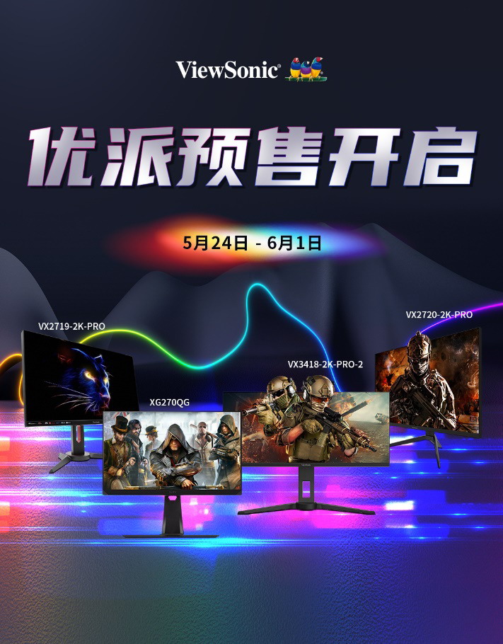明星產品VX2719-2K-PRO黑豹電競顯示器和大屏顯示器VX2778-2K-HD-2,開啟預售,在開門紅當天秒殺,讓利多多,讓你欲罷不能。優派黑豹系列的旗艦 “全能”VX2719-2K-PRO,擁有炫酷時尚的外觀和卓越的性能,簡約的三邊微邊框和炫酷漸變的外觀設計,搭載著黑豹系列電競燈,可視范圍加大的同時點燃了玩家的游戲激情;27英寸的屏幕配有2K分辨率,可比1080P展現出更多細節,呈現更加清晰精彩的戰斗畫面;擁有Nano IPS面板,相比普通IPS面板具有更加豐富飽滿的色彩表現;配置的165Hz高刷新率,加上Adaptive Sync防撕裂技術,讓畫面呈現清晰、流暢、無撕裂感;高達98%的DCI-P3色域覆蓋,精準還原色彩,滿足各類大型游戲的高標準畫面需求;還備有多種符合人體工學設計的輔助配置,成為深受玩家用戶喜愛的明星產品。