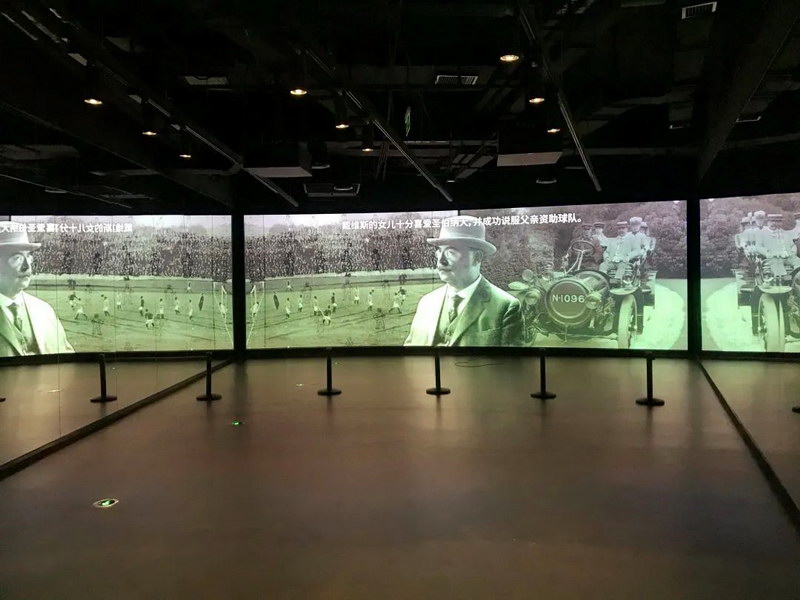 為了再現(xiàn)歷史,贏康采用了多臺4K分辨率,10000流明的投影機,正投融合完成了弧幕畫面投影,為前來參觀的游客呈現(xiàn)特定時期的曼聯(lián)歷史,近距離領略曼聯(lián)的獨特魅力。
