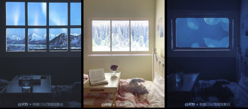 “假窗挑戰”是一項風靡全球的智能投影儀攝影法,將投影儀的屏幕當作一扇窗,只要下載或制作想要的素材,就能“定制”窗外的風景,而家搖身一變,成了世界各地的民宿。