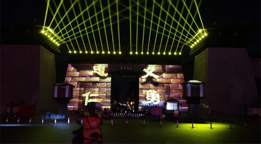 此次燈光秀便是在這曹魏古城南城門下伴著暮色上演,充分利用聲、光、電手段講述三國文化,生動刻畫了這座古城的三國歷史起源,人文典故和文化符號,在追求整體視覺效果的同時,重點突出了古城的人文底蘊和文化內涵,一陣陣狼煙四起,一幅幅沙場征戰,吸引了現場眾多觀眾的目光。