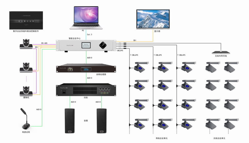一套咪頭板兩路系統輸出,支持兩套系統同時工作和獨立工作、配合升降屏實現無紙化+擴聲功能。