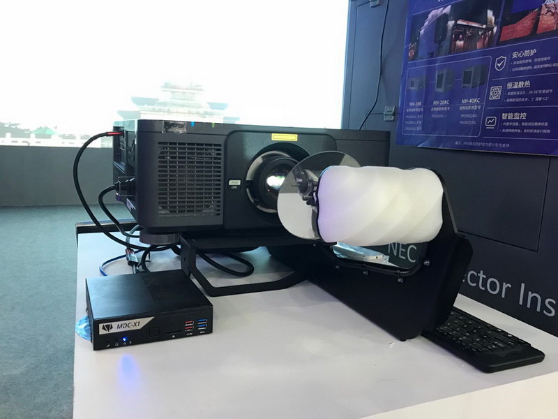 戶外亮化、夜游經(jīng)濟(jì)的興起,賦予了投影機(jī)多元化的應(yīng)用方式。然而,戶外投影環(huán)境嚴(yán)苛,要保證投影秀項目長期、穩(wěn)定運(yùn)行,既需要高品質(zhì)投影機(jī),也需要質(zhì)量上乘、穩(wěn)定性強(qiáng)的戶外箱體。現(xiàn)場展出的由NEC雙色激光工程投影機(jī)英雄系列PX2000UL+搭載IP65級全天候戶外投影箱體NH20KC傾情打造的“光影紫禁”戶外投影解決方案就給客戶吃下了“定心丸”。值得一提的是,該展項中在紫禁城上空展翅飛翔的五彩鳳凰是由NEC 激光投影機(jī)PX803UL-BK+搭配軌道鏡系統(tǒng)實(shí)現(xiàn)的創(chuàng)意移動影像,極具科技感和趣味性,令現(xiàn)場觀眾贊嘆不已。