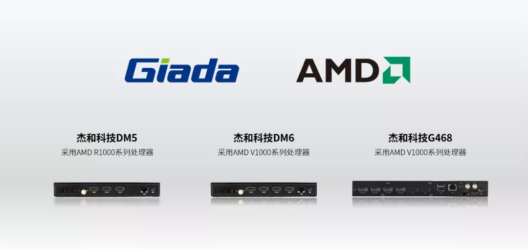 緊隨R1000系列的發布,杰和科技快速響應數字標牌市場需求,推出了搭載AMD R1000系列處理器的DM5數字標牌播放器。首發搭載AMD銳龍R1305G處理器,支持4K@60Hz視頻播放,最大3屏異顯。