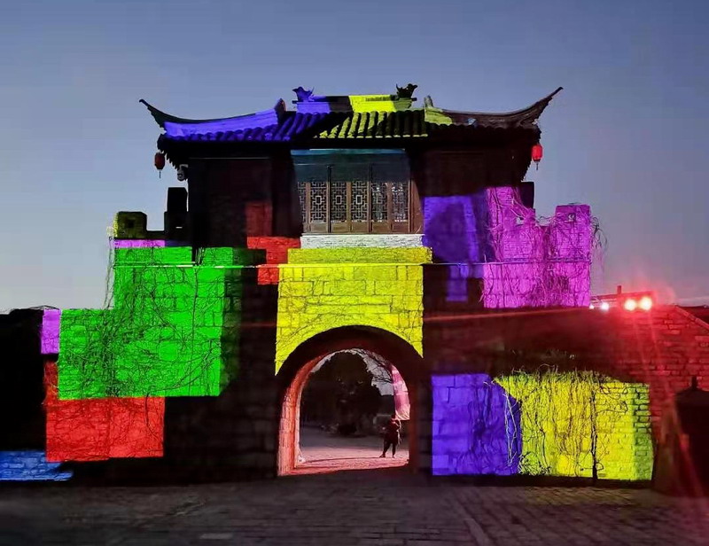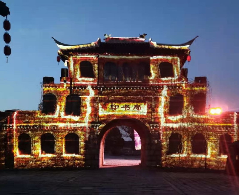 紅色夢幻 光影沙鎮——國畫激光投影機為沙家浜紅色教育基地提供城樓3D mapping投影秀