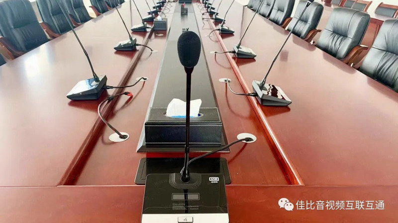 另外四間會議室,設計的討論型手拉手會議系統,系統以數字技術為核心,具有多種會議模式,會議前可設置發言數量、自動關閉、限時關閉、聲控發言等。發言單元話筒拾音靈敏、聲音清晰,支持級聯、多套系統同時使用。配合專業擴聲音箱和專業音頻處理器,即可實現討論清晰有序、高效性的會議狀態。