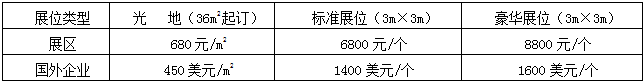 標準展位(3m×3m)6800元/個 豪華展位(3m×3m)8800元/個