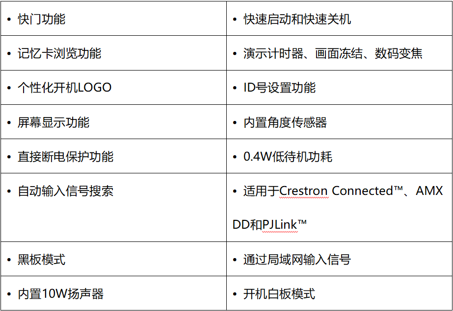 采用SOLID SHINE激光光源技術,光源更換周期長達20000小時,在教室和辦公室等粉塵濃度水平適中的地方,投影機空氣過濾網的維護周期長達20000小時,并且過濾網最多可清洗并重復使用兩次,大大節約維護成本。